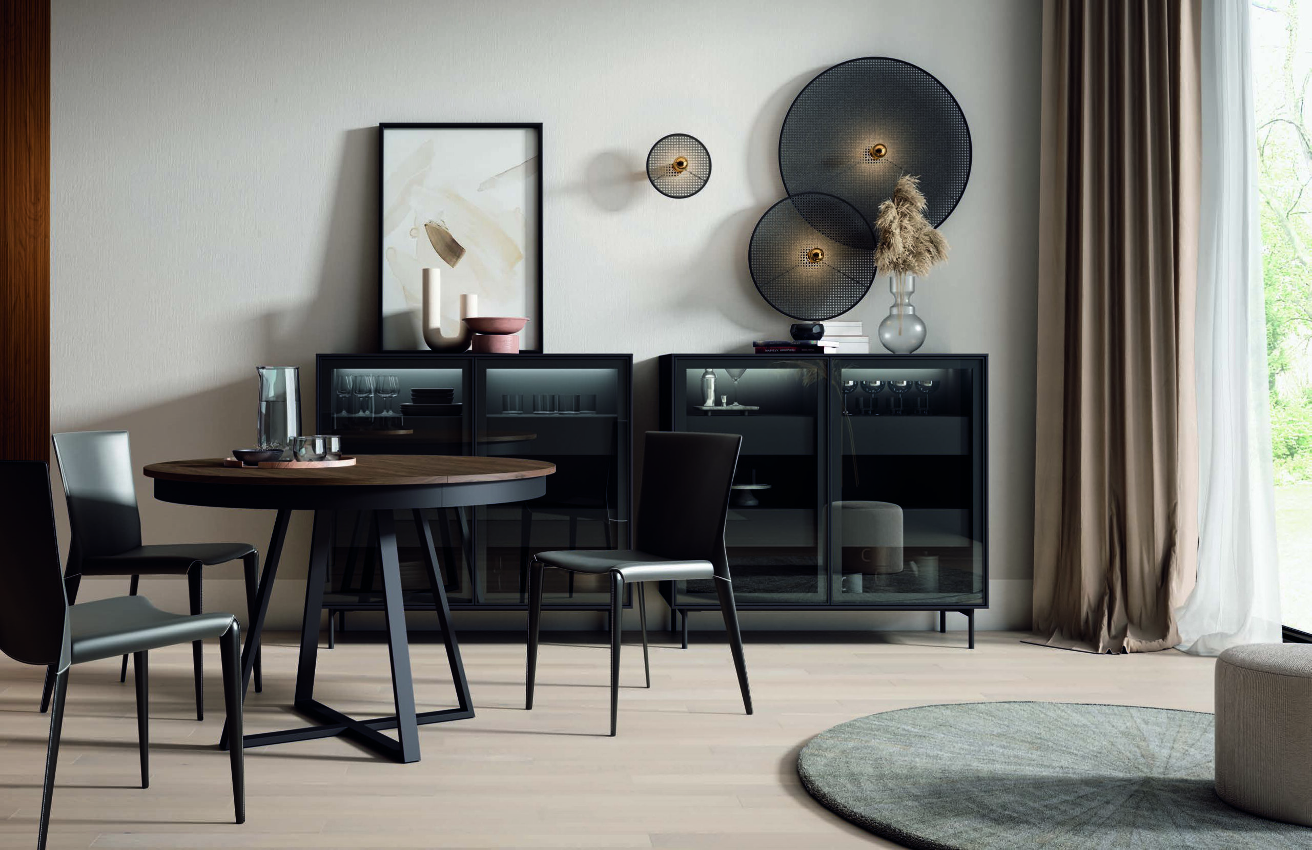 La Mesa MOON extensible de 120 cm de diámetro combina diseño contemporáneo, elegancia y funcionalidad en una sola pieza. Su forma redonda aporta equilibrio visual y favorece la conversación, convirtiéndola en el punto de encuentro perfecto para tus comidas y reuniones familiares.