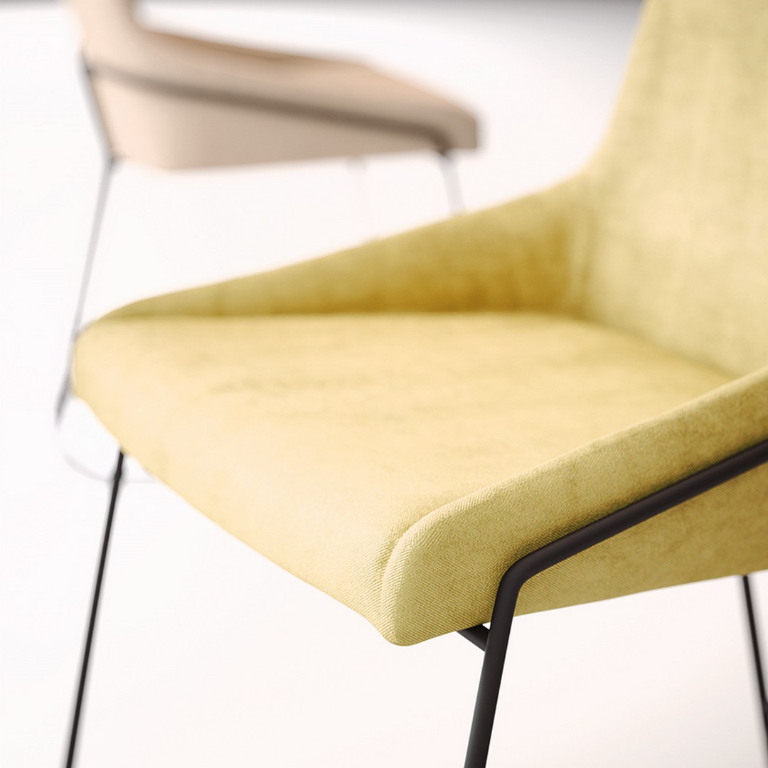 El contraste entre las patas de hierro y la tapicería suave y elegante crea un equilibrio perfecto entre lo industrial y lo sofisticado. Su asiento ergonómico y envolvente invita a disfrutar de largas sobremesas con total comodidad.