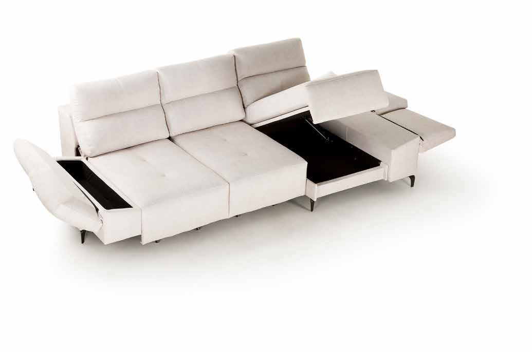 Y si valoras la funcionalidad, te encantará su brazo deslizante con arcón y su chaiselongue tipo canapé, que añaden un práctico espacio extra de almacenaje sin renunciar al diseño.